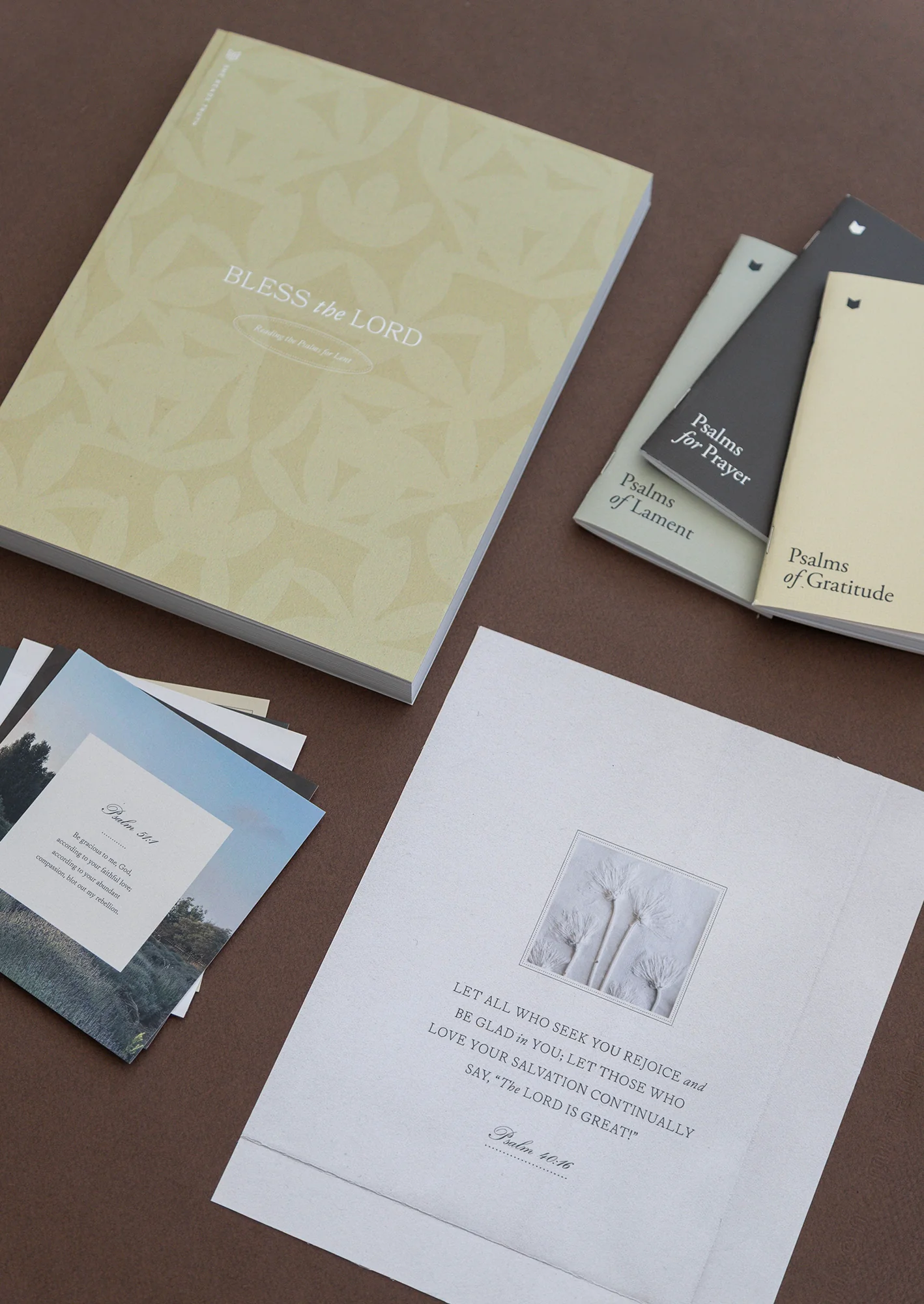 This bundle includes a Lent 2026 Women's Reading Guide, a Lent 2026 Scripture Card Set, a Psalms Pocket Edition: Psalms for Prayer, a Psalms Pocket Edition: Psalms of Gratitude, a Psalms Pocket Edition: Psalms of Lament, and a Lent 2026 Art Print.